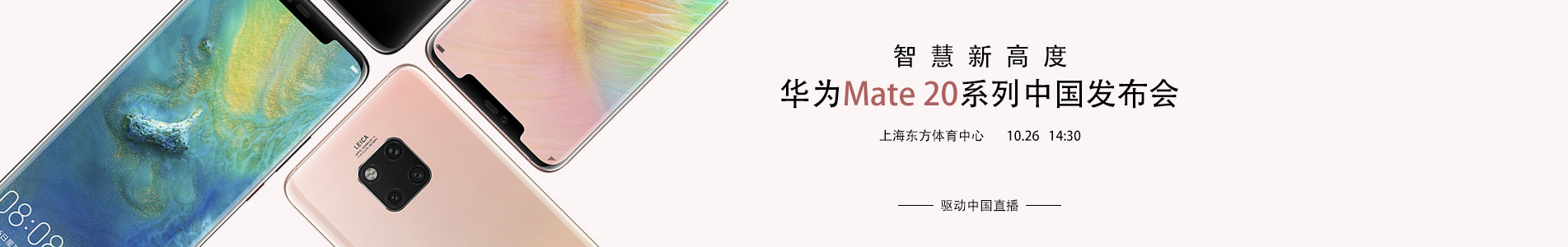 智慧新高度 华为Mate 20系列新品发布会图文直播 10月26日下午14:30分,华为将在上海东方体育中心举办华为Mate 20系列中国发布会。麒麟980加持下的华为Mate 20系列能带来多大出色表现?超广角三摄、超微距影像能带来多大视觉效果?华为Mate 20国行版又有什么新的配置版本?驱动中国作为受邀媒体将为大家全程直播,敬请关注!