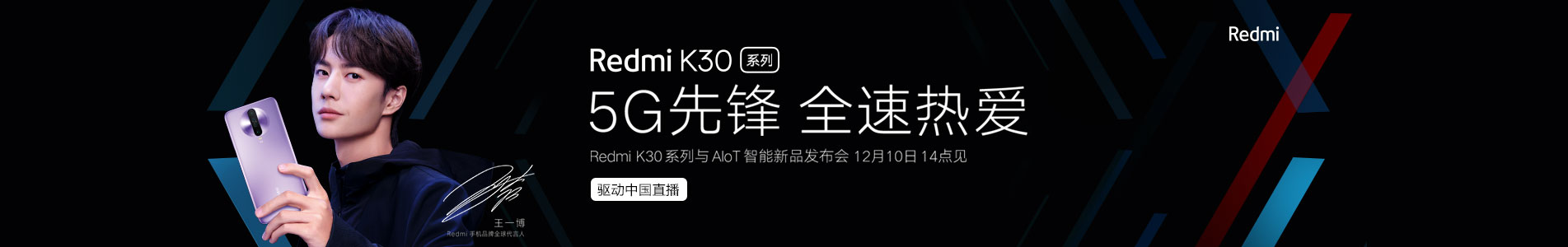 Redmi K30系列与AIoT智能新品发布会直播 Redmi K30系列手机是Redmi品牌首款双模5G手机,5G先锋,全速热爱,不仅有最新的5G技术,还有更多硬核、有趣的功能首发除此之外,还有新品笔记本、小爱音箱、路由器同场发布,驱动中国将全程直播,12月10日下午2点见! 视频直播