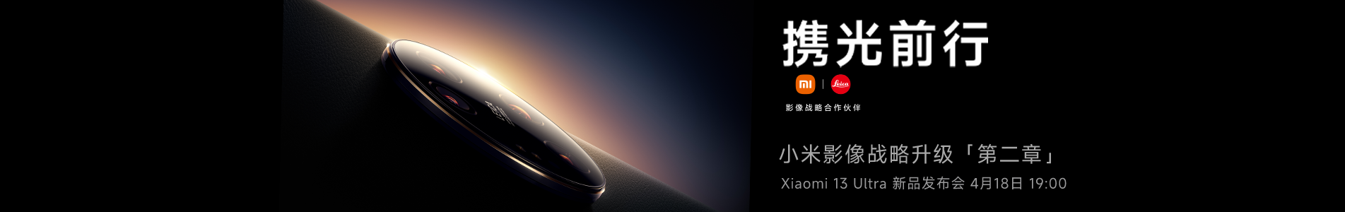 Xiaomi 13 Ultra 新品发布会 4月18日 晚19:00,小米专业影像旗舰新品 Xiaomi 13 Ultra 将重磅发布,小米影像战略升级再迎关键一步,突破移动光学瓶颈,以卓越光学表现,开启移动影像光学时代。新品发布将在小米科技园举行,线上各大平台将进行同步直播,届时,也将有多款众所期待的新品发布! 视频直播
