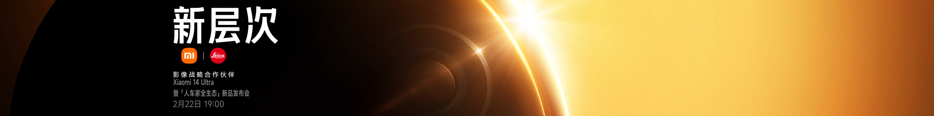 Xiaomi 14 Ultra 暨「人车家全生态」新品发布会 Xiaomi 14 Ultra 暨「人车家全生态」新品发布会重磅来袭,同场发布的还有Xiaomi Pad 6S Pro 12.4、Redmi Book Pro 2024 14″/ 16″等科技新品。敬请期待。 视频直播