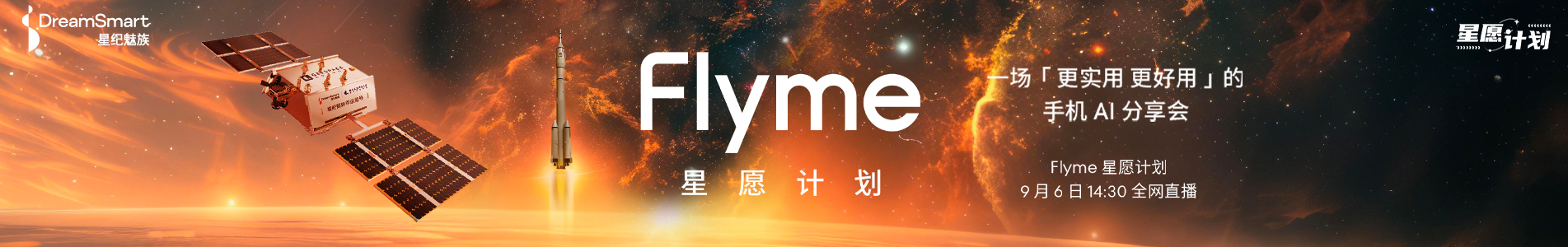 Flyme 星愿计划 Flyme 一直倾听用户心声,与用户共创系统, 我们希望与用户共同创造更多实用好用的 AI 功能。9 月 6 日 14:30,给大家带来一场「更实用 更好用」的手机 AI 分享会 —— Flyme 星愿计划。 视频直播