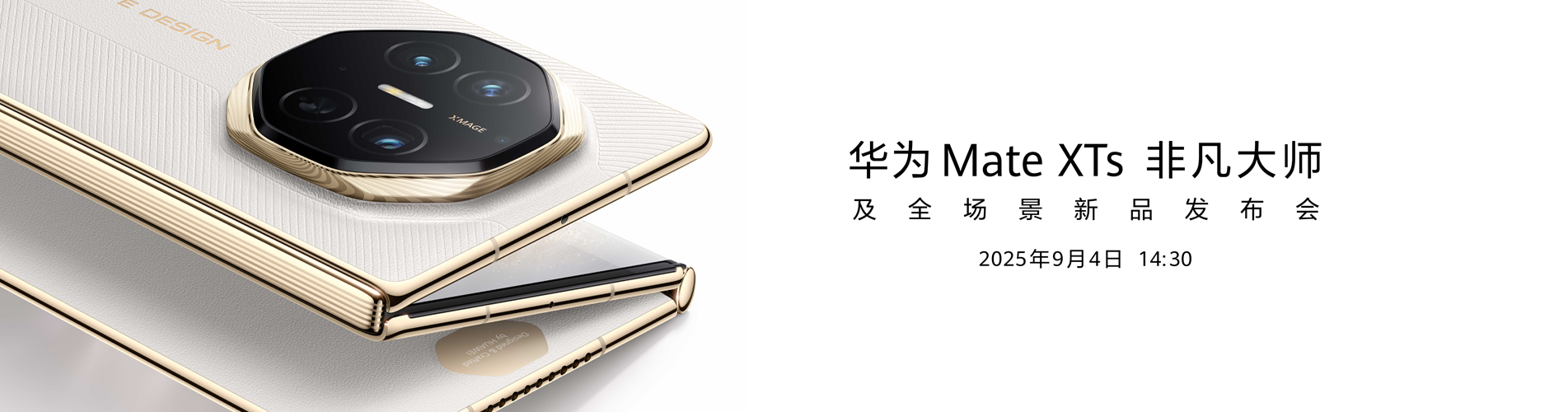9月4日14:30,华为Mate XTs 非凡大师及全场景新品发布会,我们不见不散。